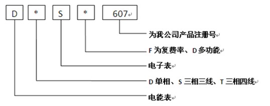D電能表、T三相四線(S三相三線)、S代表電子表、F代表分時計(jì)量、607為我公司產(chǎn)品注冊號