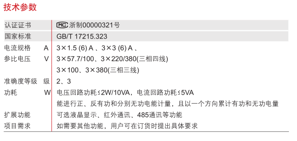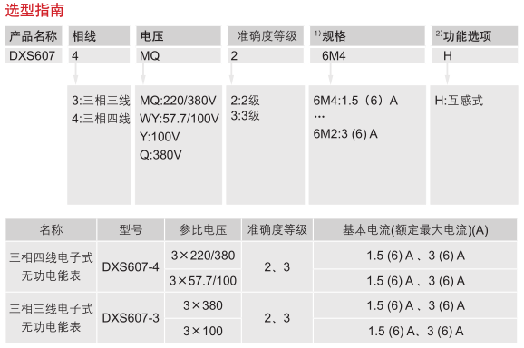 如客戶需要三相四線電子式無功電能表,電壓為220V,準確度等級為2,電流為1.5(6)A,