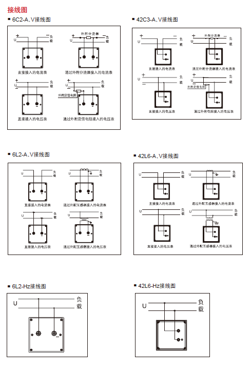 如客戶需要42型指針板表,被測電參量為交流電流,量程為200A,則儀表必須經(jīng)過 200A/5A 電流 互感器接入被測電路,儀表描述為 42L6 電流表 200/5 ,訂貨編碼為 42L6A200 。