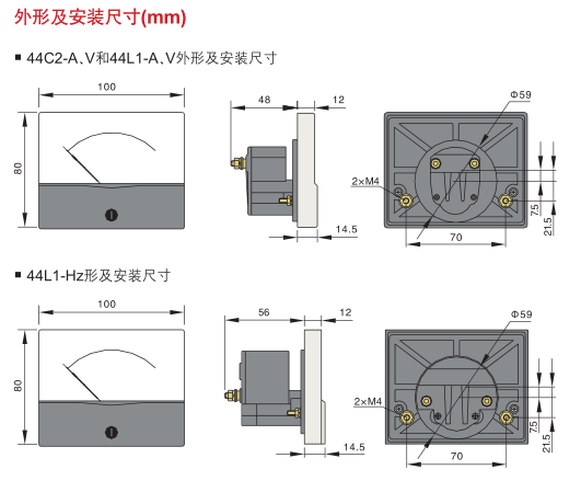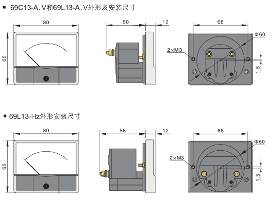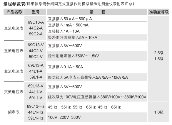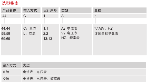 訂貨示例:備注:電壓表、電流表中,69型的準確等級為2.5級,44型與59型的準確等級為1.5級