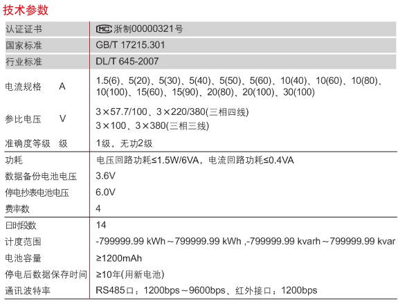 能分時(shí)計(jì)量組合有功電量,正、反有功電量及需量、組合無(wú)功,四象限無(wú)功電量,并具有