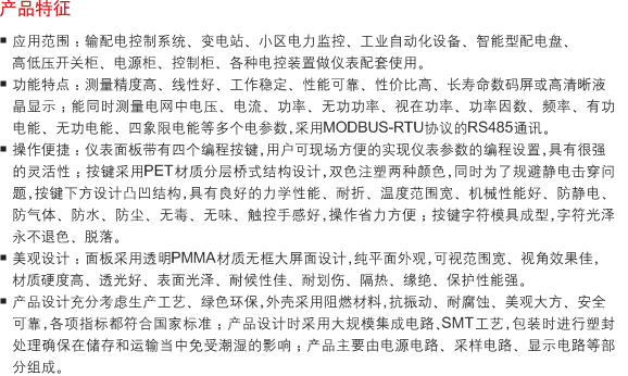 為 42 × 42, 品種結(jié)構(gòu)為可編顯示儀表,顯示方式為液晶顯示,量程為 AC450V 100/5A 則相對(duì)應(yīng)的